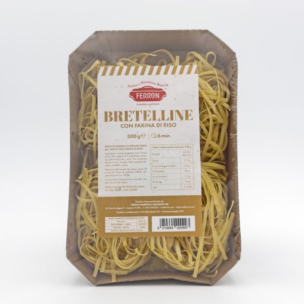 Delicata pasta all'uovo con farina di grano, farina di Riso e farina di gemma di Riso.